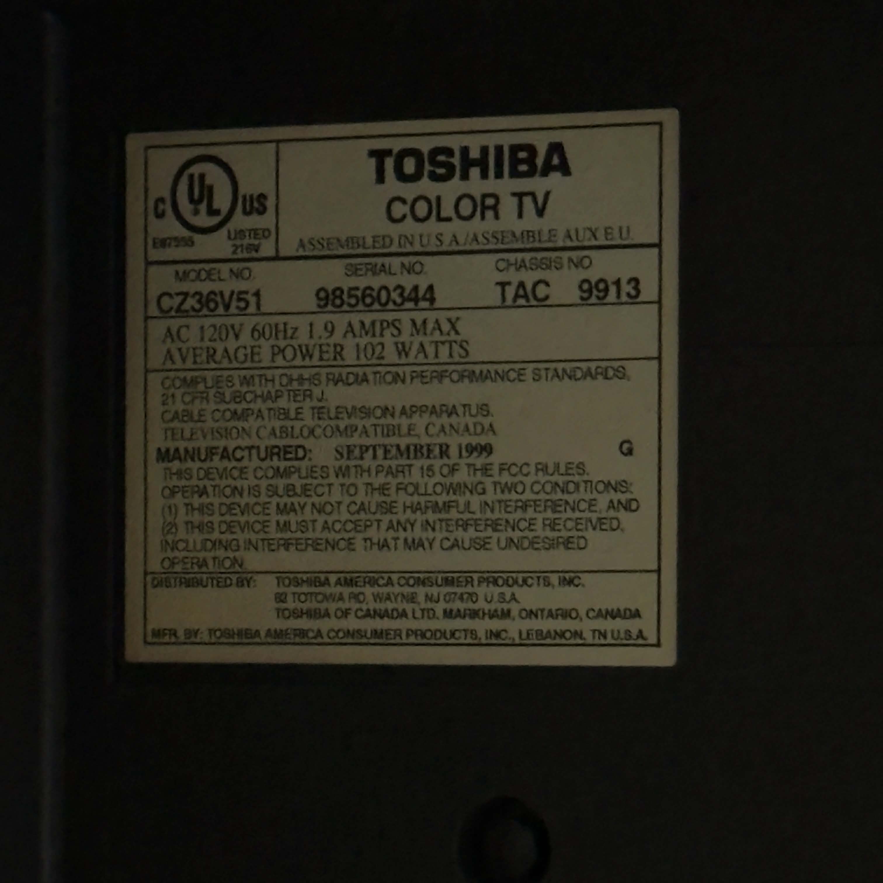 Toshiba CZ36V51