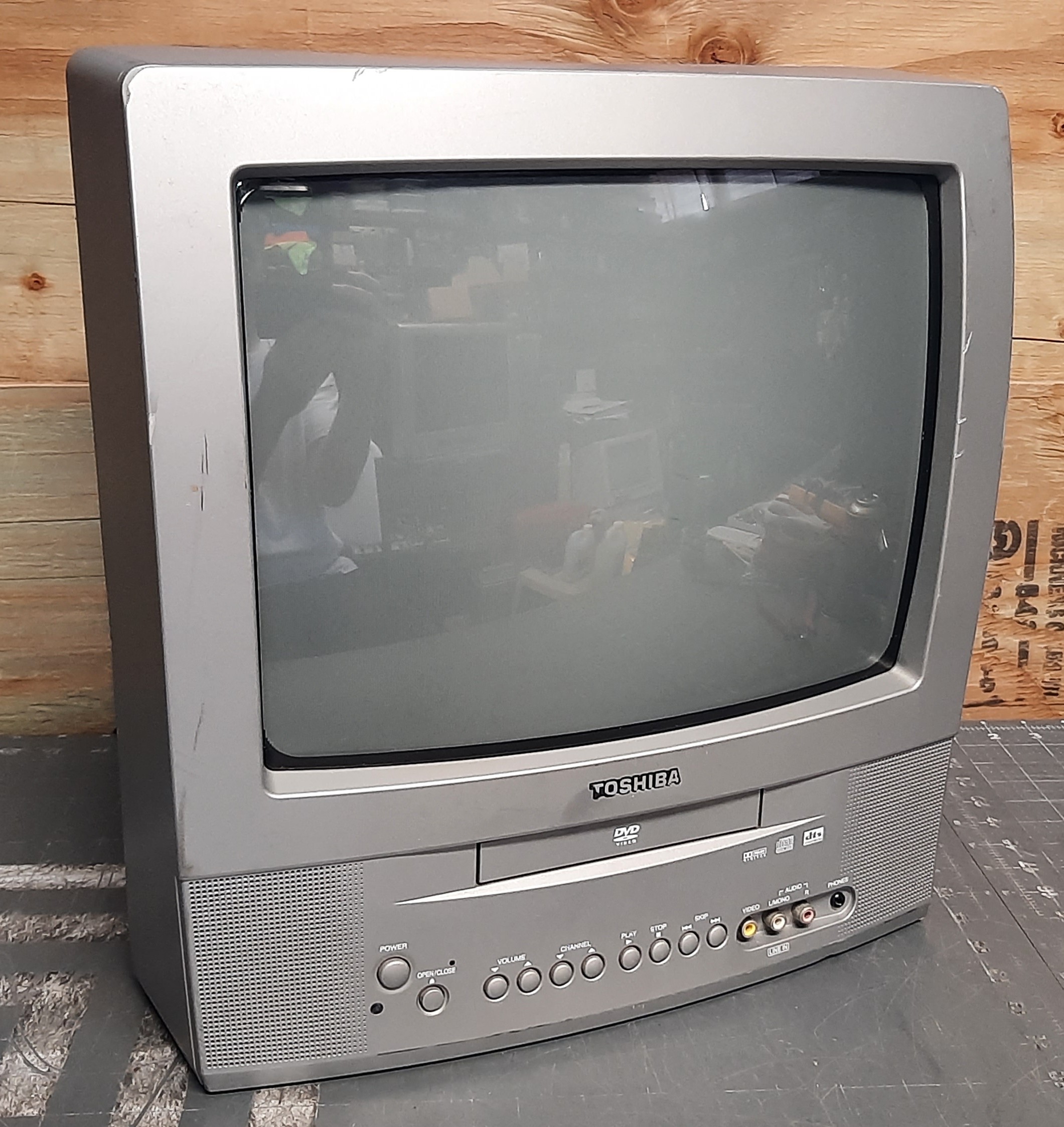 13" TV/DVD combo, made by Orion and sold by Toshiba. Includes a front mounted stereo AV input. Similar in style to the MV13N3.