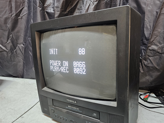 13" TV/VCR combo, made by Orion and sold by Toshiba. Includes a front mounted mono AV input.