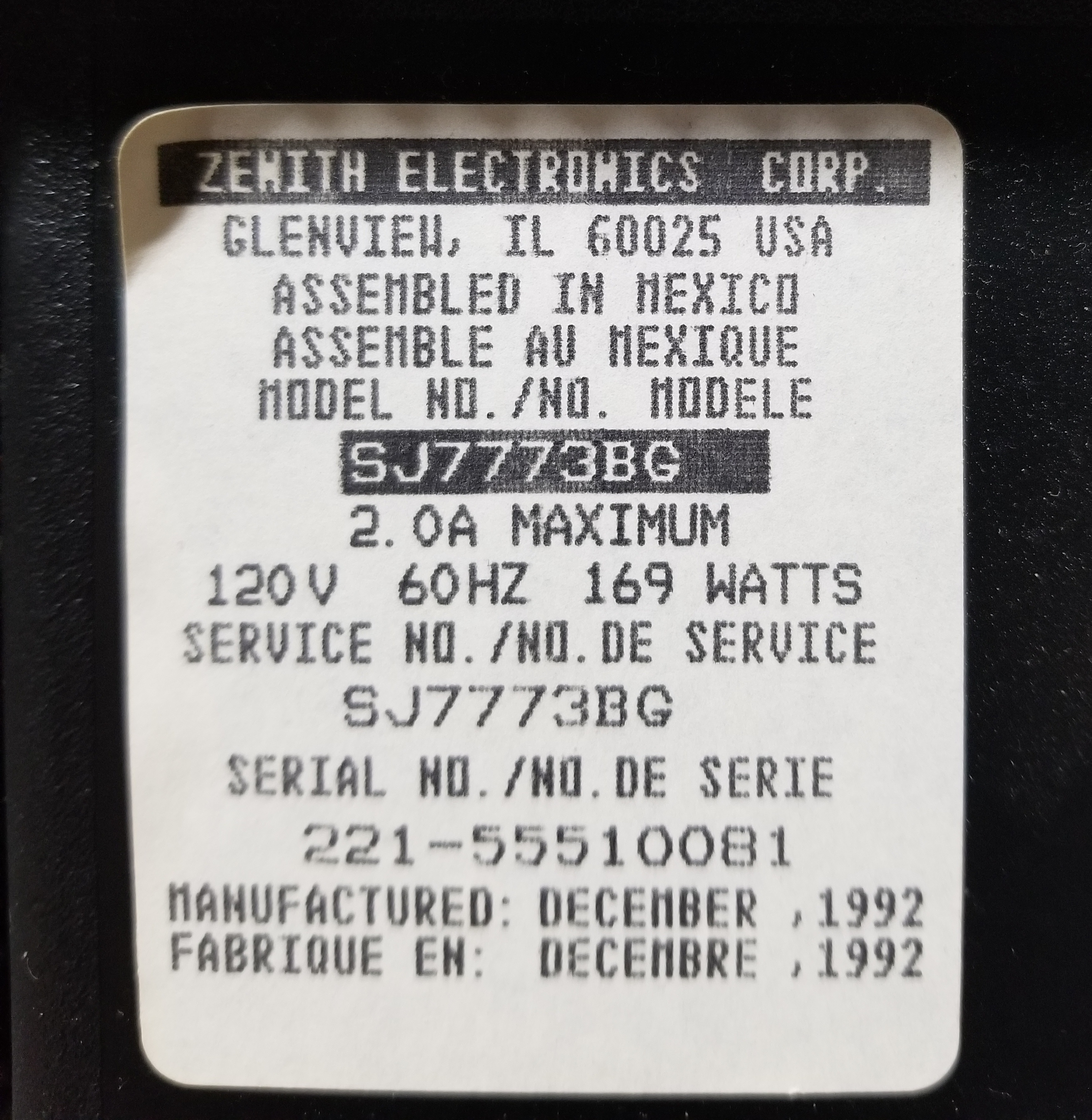 Zenith 27" Stereo Color TV. SEq Audio System.
